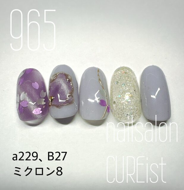 ラベンダー色フラワーネイル
